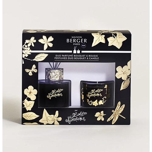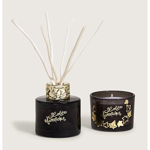 Coffret comprenant une mini bougie noire 80gr et un mini bouquet noire 80ml parfum lolita lempicka