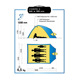 Cette tente tunnel peut accueillir confortablement deux adultes et vous protège efficacement grâce à ses coutures étanchées. La porte latérale munie d’une moustiquaire assure une ventilation optimale tout en vous protégeant des insectes, et l’avancée offre un espace supplémentaire pour ranger vos affaires.