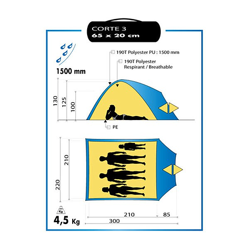 Fabriquée en toile Polyester Ripstop robuste, la Scorpion 2 a une hauteur de 1m, une longueur de 2,50m et une largeur de 1,80m. Une fois pliée, elle mesure seulement 38x14cm pour un poids de 2 kg, facilitant son transport.