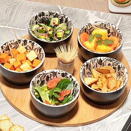Composé de cinq ramequins en céramique, d’un pot central pour les piques et d’un plateau rond en bambou, cet ensemble est aussi pratique qu’élégant. Idéal pour présenter olives, dips, fruits secs ou bouchées maison, il sublime vos préparations tout en facilitant le service. Le contraste entre les motifs floraux discrets et la texture boisée du plateau crée une harmonie visuelle apaisante et raffinée.